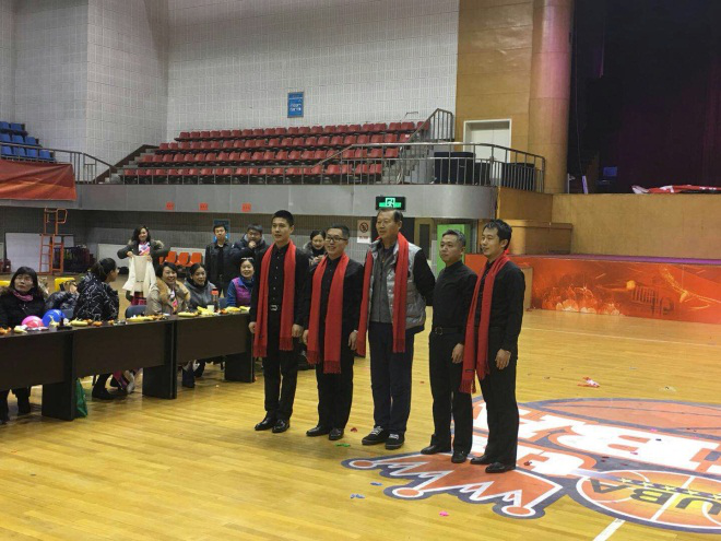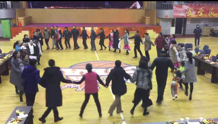 联谊会还举行了《击鼓传花》、《踩气球》、《猜谜语》等游戏活动。大家在紧张刺激、躲闪欢叫、笑逐颜开的气氛中放飞心情、放松身心。武术教研室还特别给退休的老教师献上了大红围巾,表达了对前辈的敬意。联欢活动在大合唱《相亲相爱的一家人》的歌声中圆满结束。